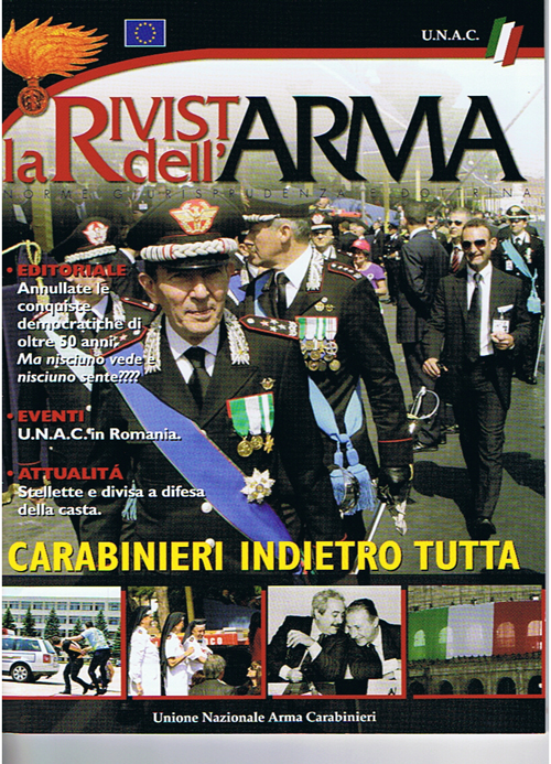 -EDITORIALE : 197 ANNI DI STORIA DELL'ARMA - PIU GENERALI CHE CARABINIERI; -OSDIFE - Osservatorio sulla Sicurezza e Difesa CBRNe CONVEGNO “SICUREZZA DEI PORTI E DELLA NAVIGAZIONE”; -.INTERROGAZIONE PARLAMENTAREDEL REINTEGRO CARABINIERI AUSILIARI IN CONGEDO ON FABIO RAMPELLI E MARSILIO DEL 25.MAGGIO 2011 SEDUTA NR 478; -congedi aspettative e permessi; -LAVORI USURANTI; -Cassazione_ la strage di Nassiriya poteva essere evitata_ Le colpe dei generali; -Legge 122-2010 Disposizioni pensionistiche per il personale militare; -PREMIO INTERNAZIONALE SELINUNTE GLADIATORS; -Privilegi nella retribuzione del Comparto Sicurezza e Difesa; -Interrogazione Parlamentare sul Cocer; -E’ SUPER STANGATA SUGLI STATALI; -UNAC.TV E MOLTO ALTRO ANCORA SULL'UNICA RIVISTA SPECIALIZZATA DEL SETTORE VERAMENTE INFORMATIVA PER TUTTI I CARABINIERI, FINANZIERI, MILITARI ED APPARTENENTI AL SETTORE PUBBLICA AMMINISTRAZIONE E COMPARTO SICUREZZA. |